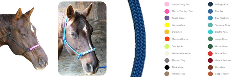 Unleash your inner designer and create your very own halter. Be a showstopper with this fun and stylish halter, designed by you. Made from a thick 3/8” rope for a “chunky” fashion look. Halter features a posh and plush fuzzy nose band.